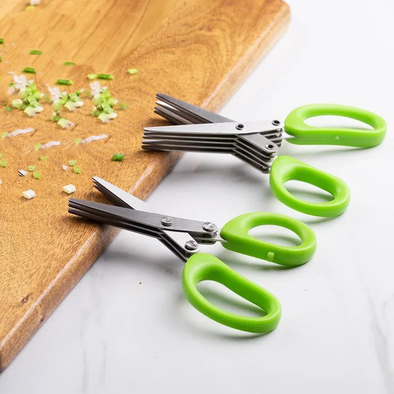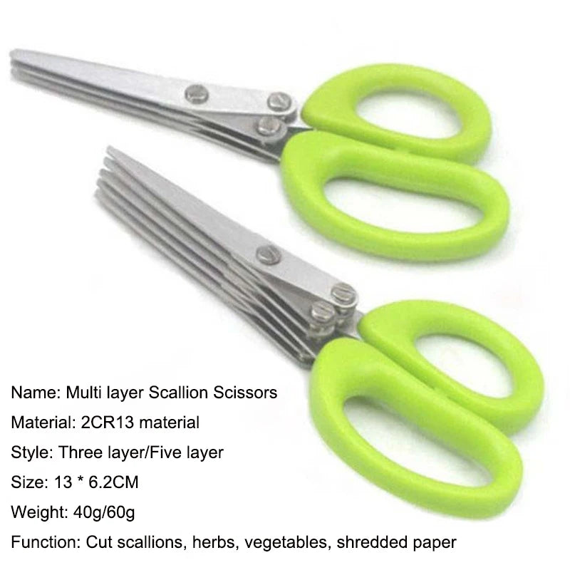 Multi-functional Stainless Steel 3/5 Layer Kitchen Scissors Pepper Shredded Chopped Scallion Cutter Laver Cut Cooking Tool
